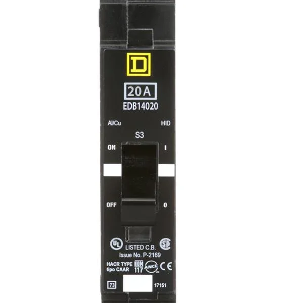EDB14020 – Square D – Molded Case Circuit Breaker Bolt-On – 20 Amp – 1 Pole – 277 Volt