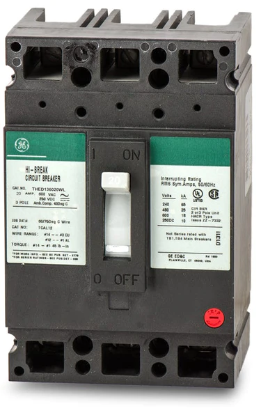 THED136020WL – GE – Molded Case Circuit Breaker Feed-Thru – 20 Amp – 3 Pole – 600 Volt