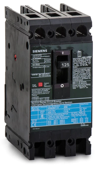 ED63B125L – Siemens – Molded Case Circuit Breaker Bolt On – 125 Amp – 3 Pole – 600 Volt