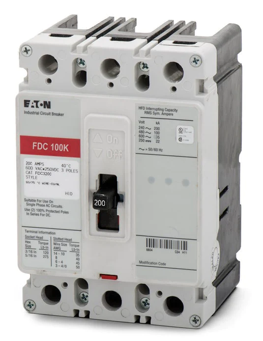 FDC3200 – Eaton – Molded Case Circuit Breaker Bolt-On – 200 Amp – 3 Pole – 600 Volt