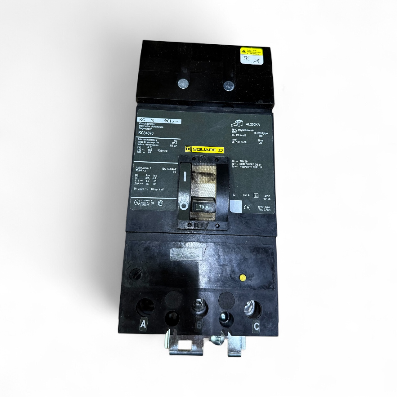 KC34070 – Square D – Molded Case Circuit Breaker I-Line Plug-In – 70 Amp – 3 Pole – 480 Volt