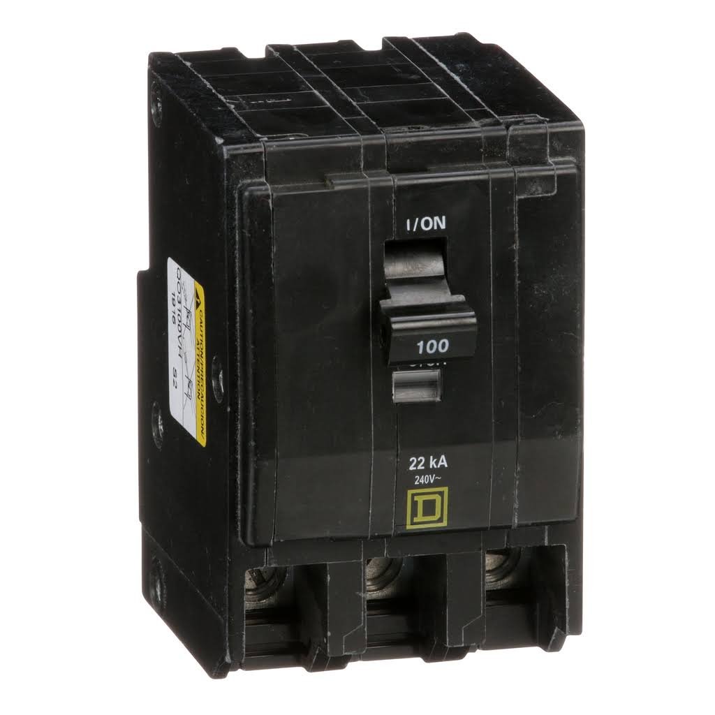The Square D QO3100VH is a 3 Pole thermal magnetic molded case circuit breaker with a current rating of 100 Amps and a voltage rating of 120/240VAC. It has an interrupting rating of 22kA at 120/240VAC. The QO3100VH has a plug-in mounting type and includes long time and instantaneous trip functions.