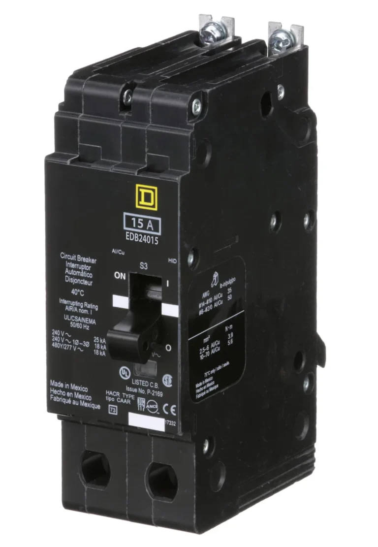 EDB24015 – Square D – Molded Case Circuit Breaker Bolt-On – 15 Amp – 2 Pole – 480 Volt
