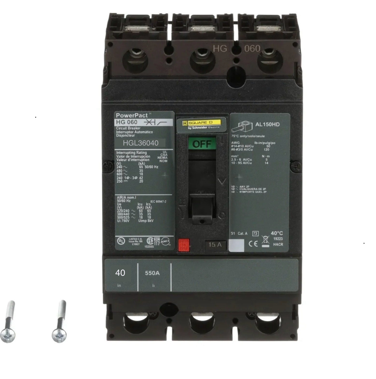 FavoriteHGL36040 – Square D – Molded Case Circuit Breaker Feed-Thru – 40 Amp – 3 Pole – 600 Volt