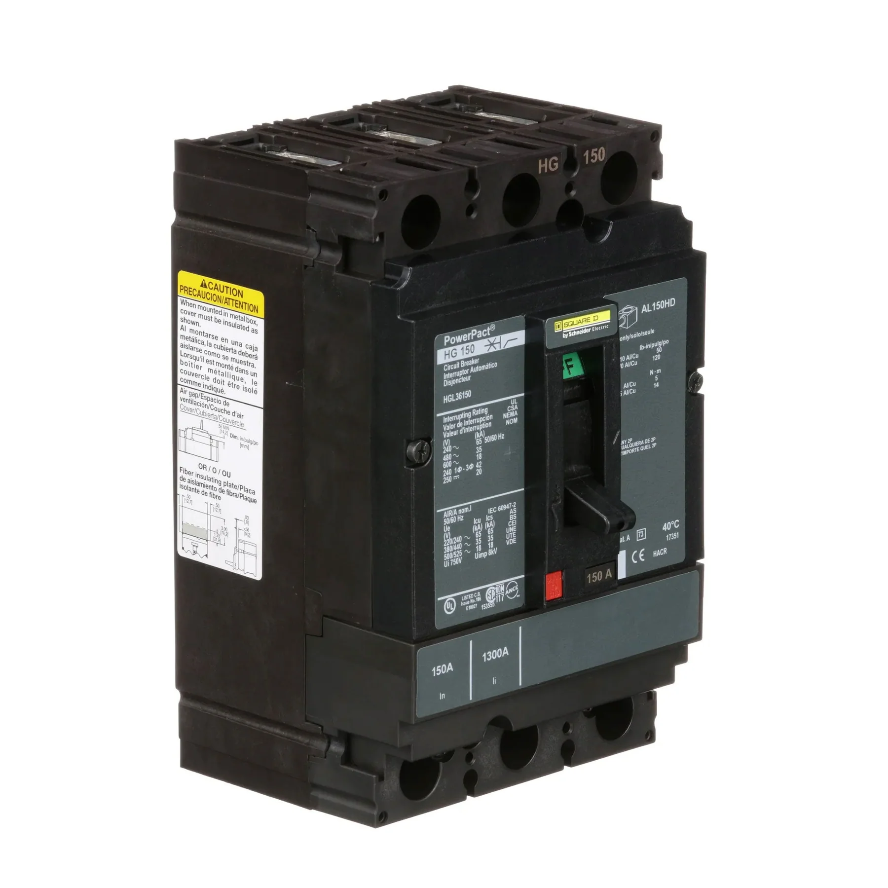 HGL36150 – Square D – Molded Case Circuit Breaker Feed-Thru – 150 Amp – 3 Pole – 600 Volt