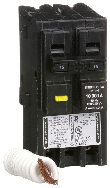 COMMON TRIP MINIATURE TYPE LOAD CENTER USED ON 14 TO 6 AWG (COPPER) 12 TO 4 AWG (ALUMINUM) WIRE SIZE UL APPROVAL 120/240 VOLT AC VOLTAGE RATING PLUG-ON MOUNTING 10 KILOAMP INTERRUPTING RATING 15 AMP CURRENT RATING 2 POLE(S) SCREW CLAMP TERMINAL TYPE 6 MILLIAMP TRIP SENSITIVITY HOMELINE[TM] BRAND