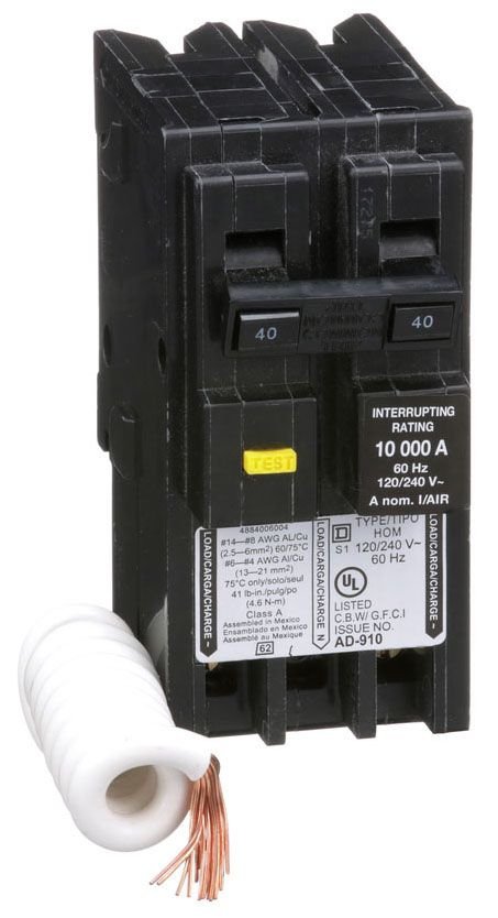 HOM240GFI – Square D – 40 Amp Ground Fault Circuit Breaker Plug-In – 40 Amp – 2 Pole – 240 Volt
