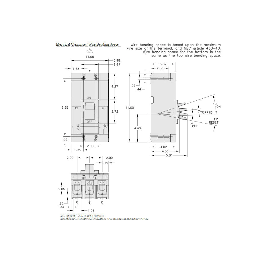 LAL36300 – Square D – Molded Case Circuit Breaker Feed-Thru – 300 Amp – 3 Pole – 600 Volt