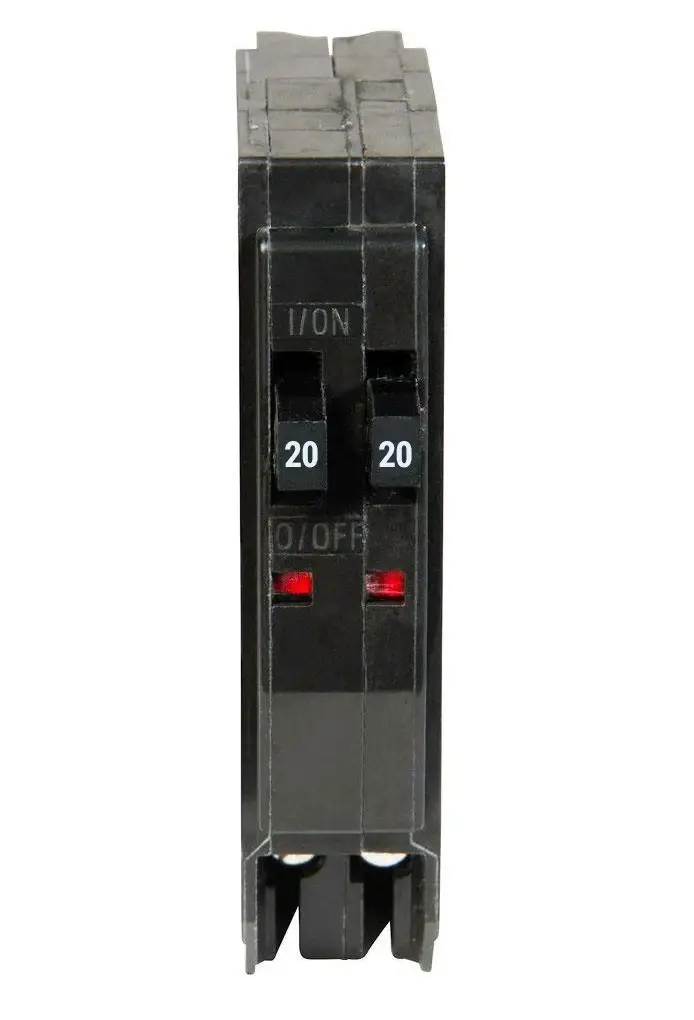 Square D Tandem Plug-On Circuit Breaker it has a one pole circuit breaker features thermal magnetic molded case for extra protection. circuit breaker has current rating of 20/20 amps and voltage rating of 120/240 vac. it has interrupt rating of 10 kilo-amps and accommodates copper or aluminium wire size of 14 – 8 awg.