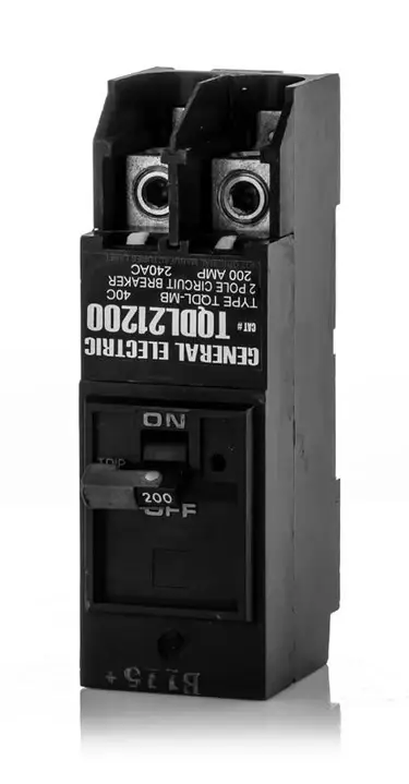 General Electric Plug-In Circuit Breaker its a type tqdl two pole one phase 200 amp 120v/240v 10kA@120V ul listed plug-in and complete with internal common trip (li) long-time and instantaneous trip functions and load side lug terminal thermal magnetic molded case circuit breaker.